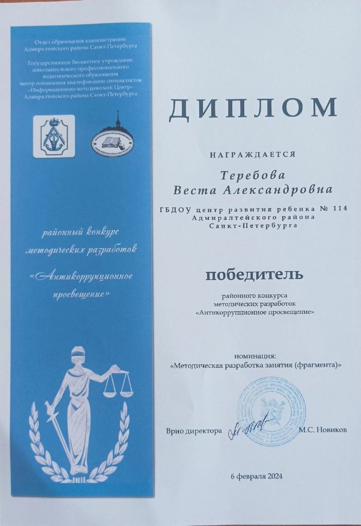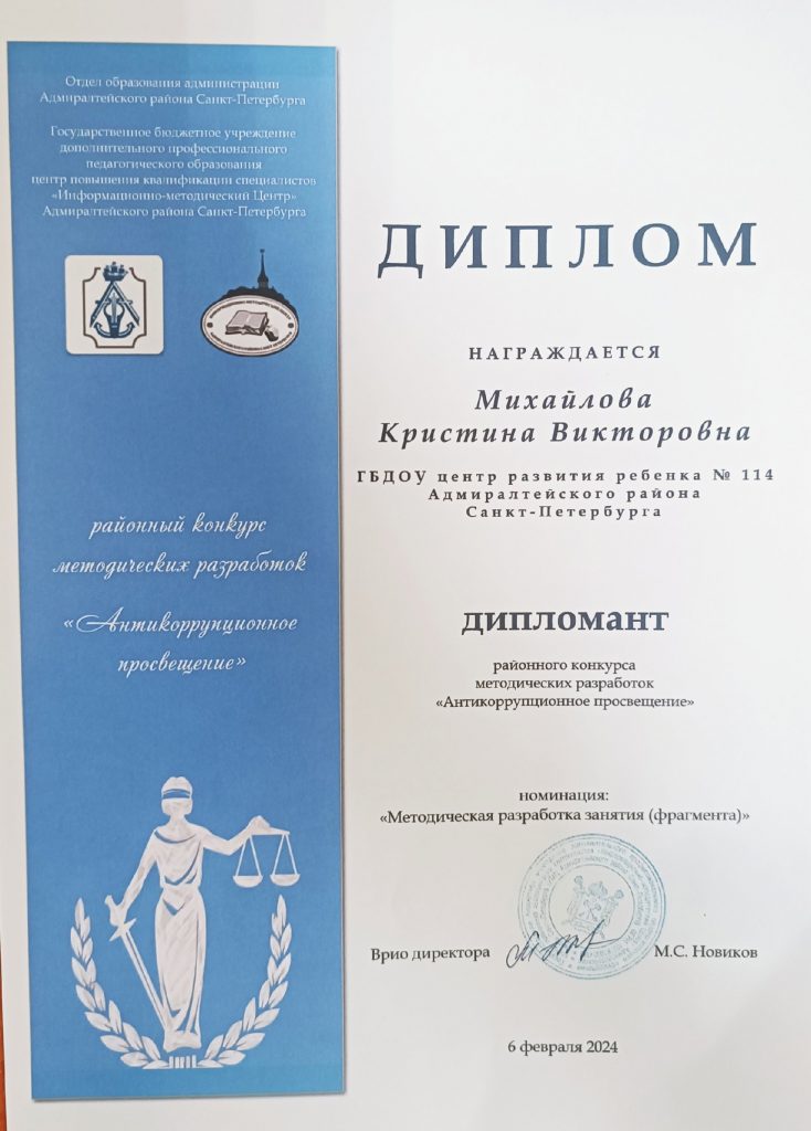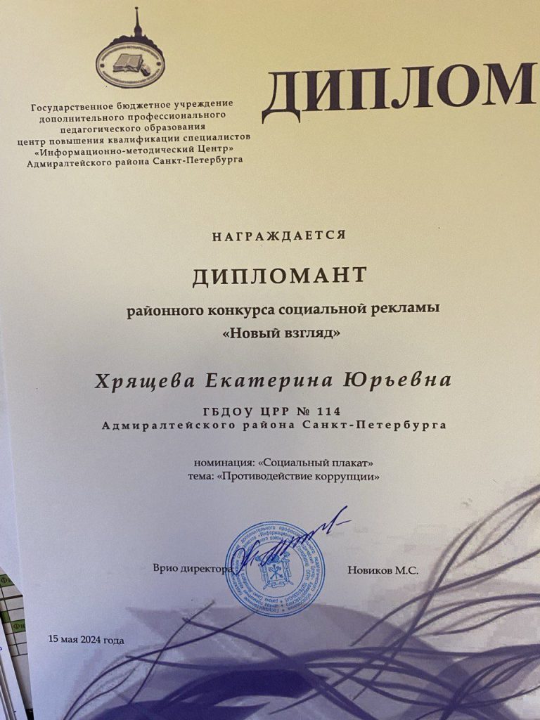 — разработана Программа противодействия коррупции в ГБДОУ центре развития ребенка-детском саду № 114 Адмиралтейского района Санкт-Петербурга на 2023-2024 годы