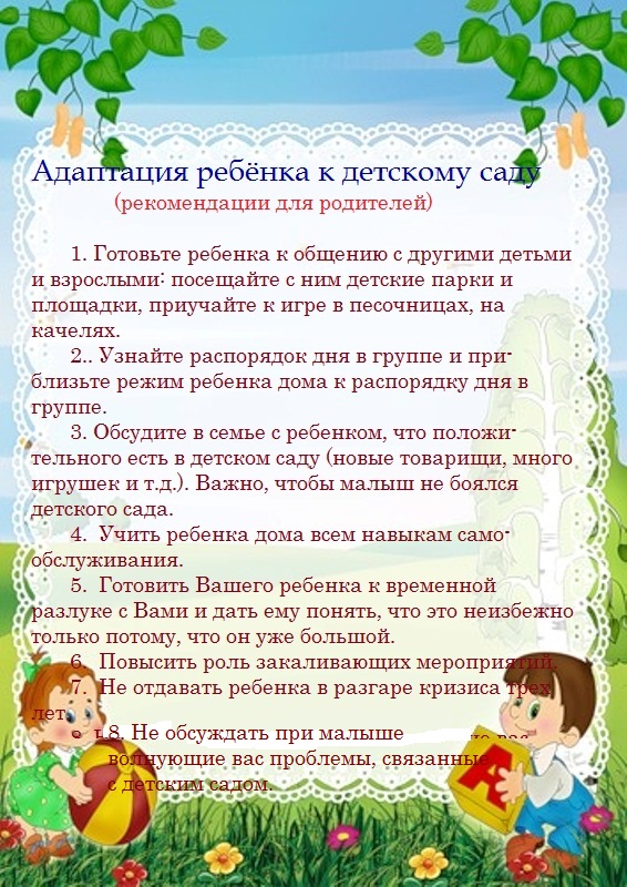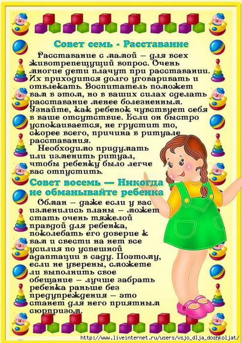— Не угрожать ребенку детским садом как наказанием за непослушание;