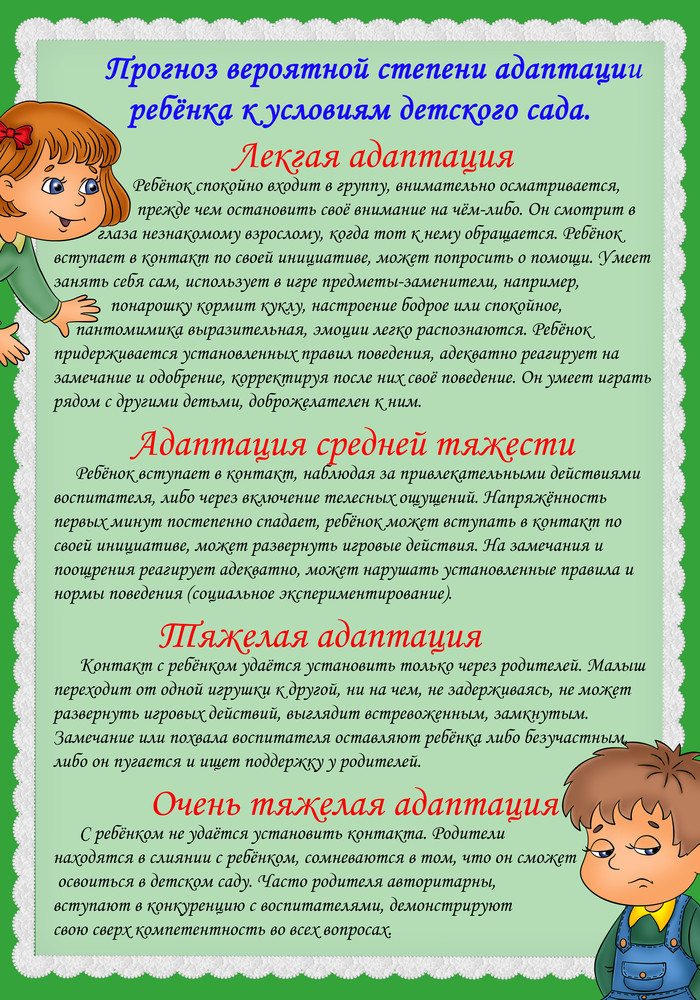 Сколько по времени будет продолжаться адаптационный период, сказать трудно, потому что все дети проходят его по-разному. Но привыкание к дошкольному учреждению – это также и тест для родителей, показатель того, насколько они готовы поддерживать ребенка, помогать ему преодолевать трудности.