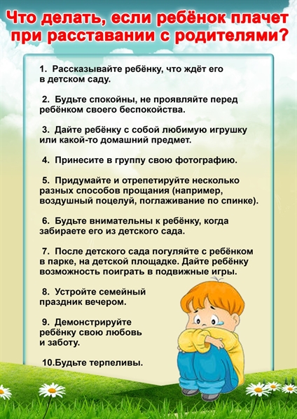 — Когда ребенок привыкнет к новым условиям, не принимайте его слез при расставании всерьез – это может быть вызвано просто плохим настроением.